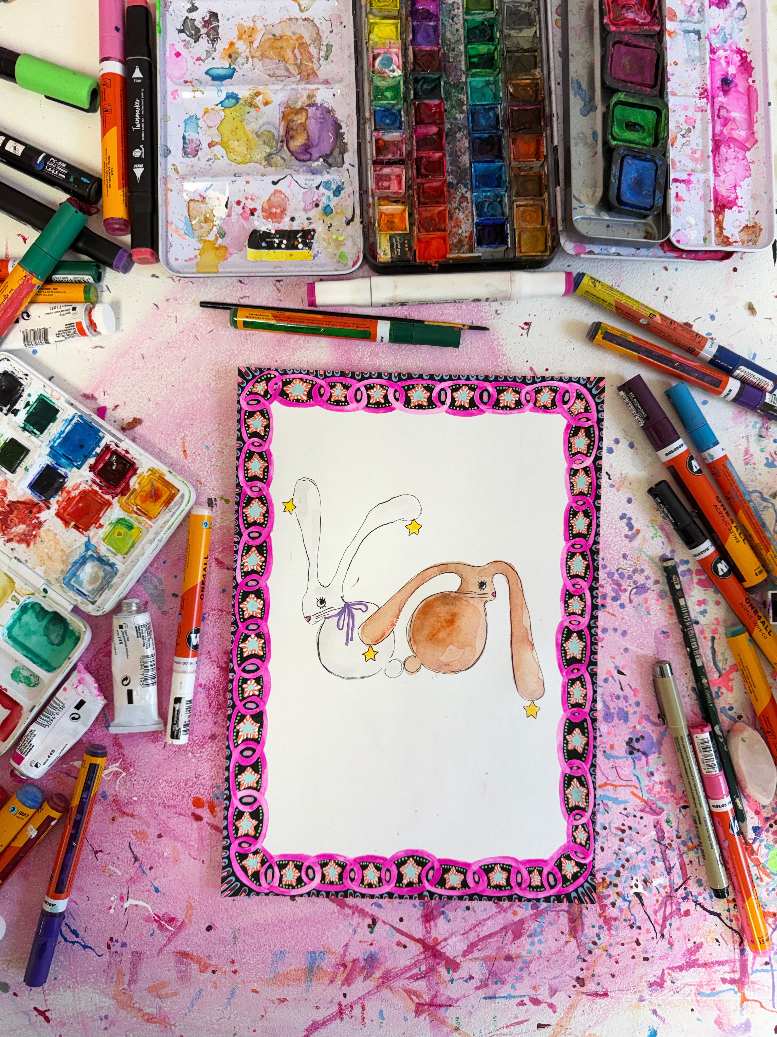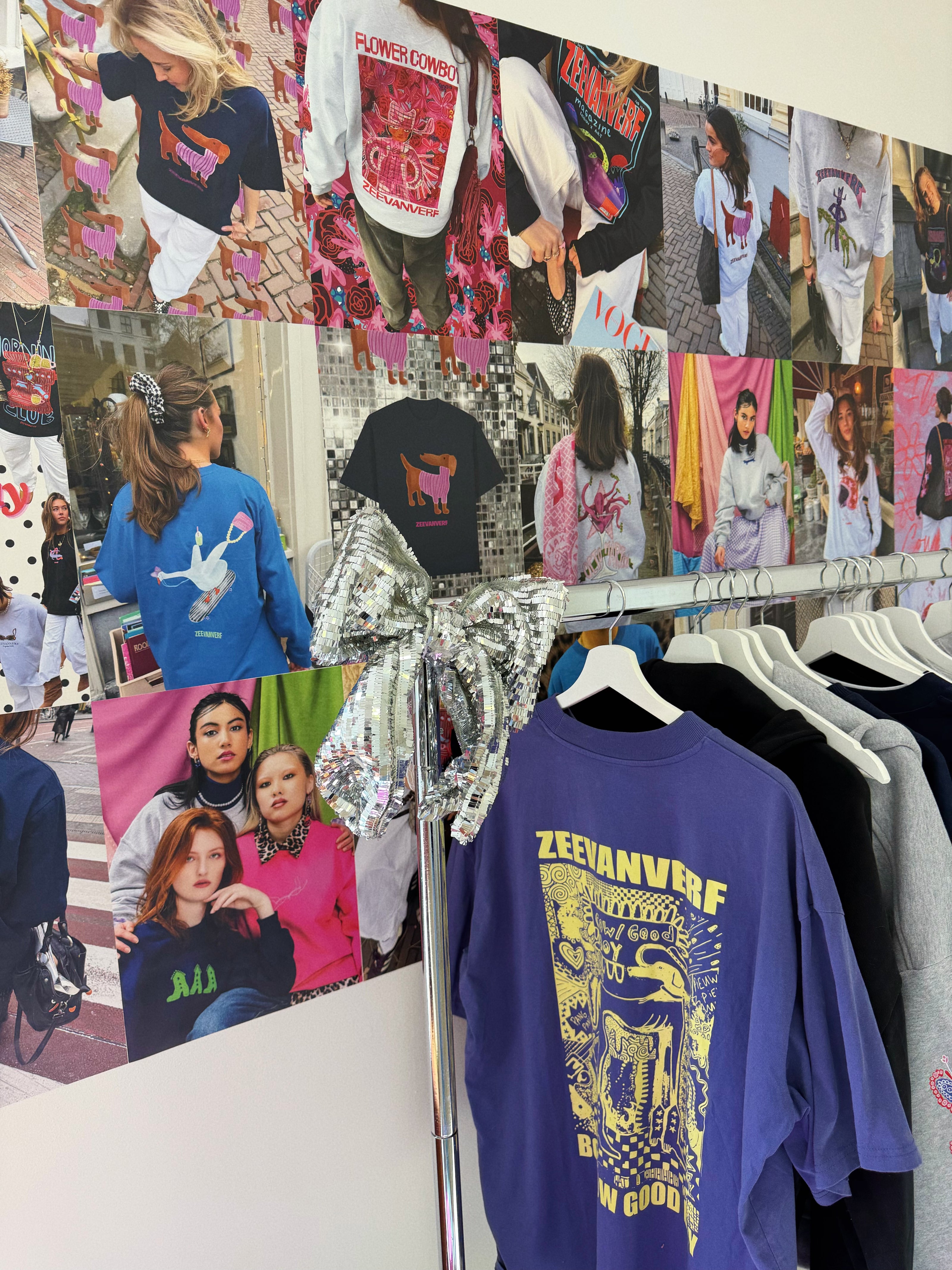 Hier ontstaan prints, tekeningen en schilderingen vol patronen, dieren, sterren, hartjes, humor en chaos. Alles wordt met de hand gemaakt en sommige ontwerpen worden daarna op kledingstukken gezet.