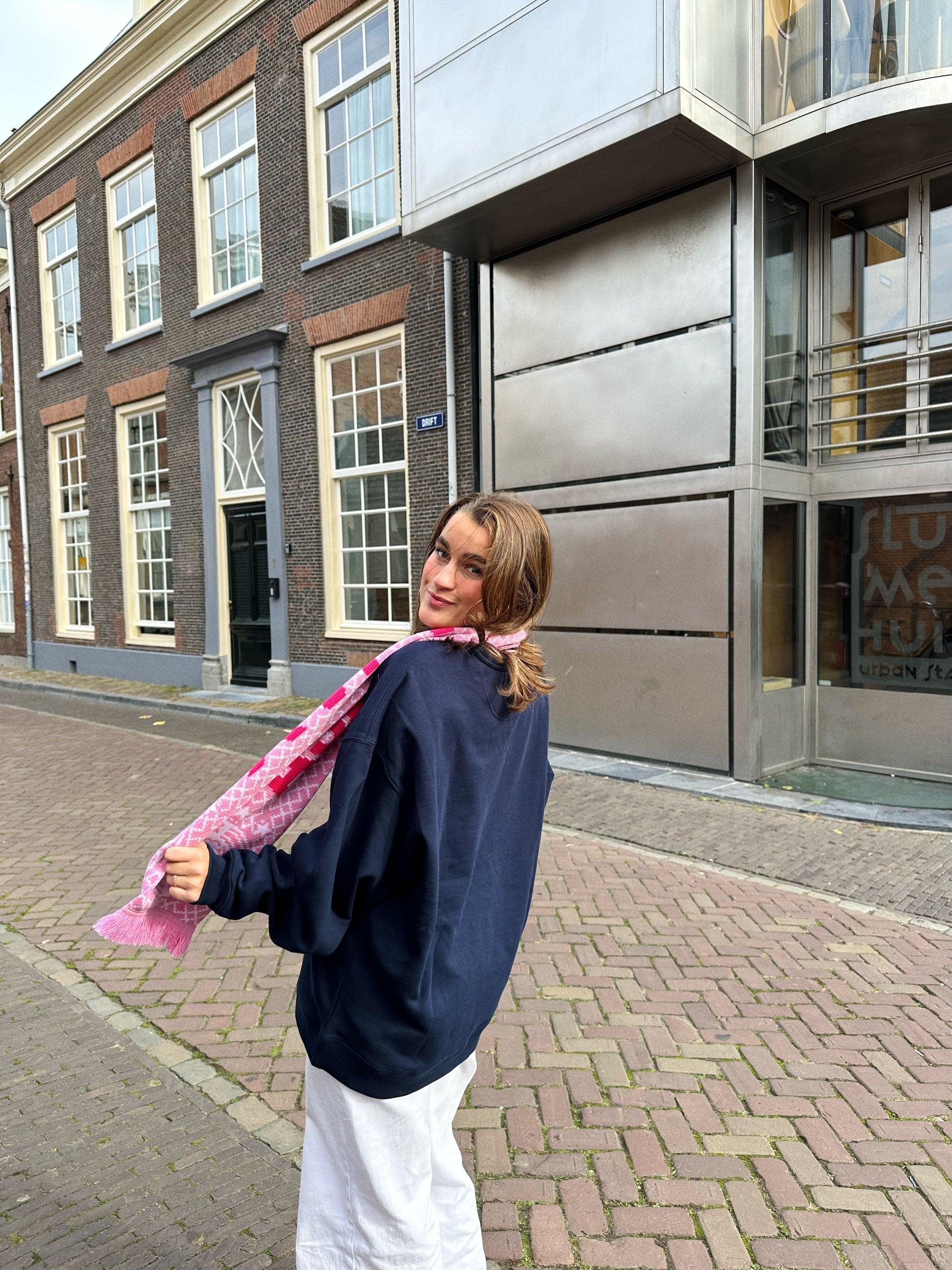 Leuke donkerblauwe oversized sweater met op de voorkant de Dalmatiër tekening.