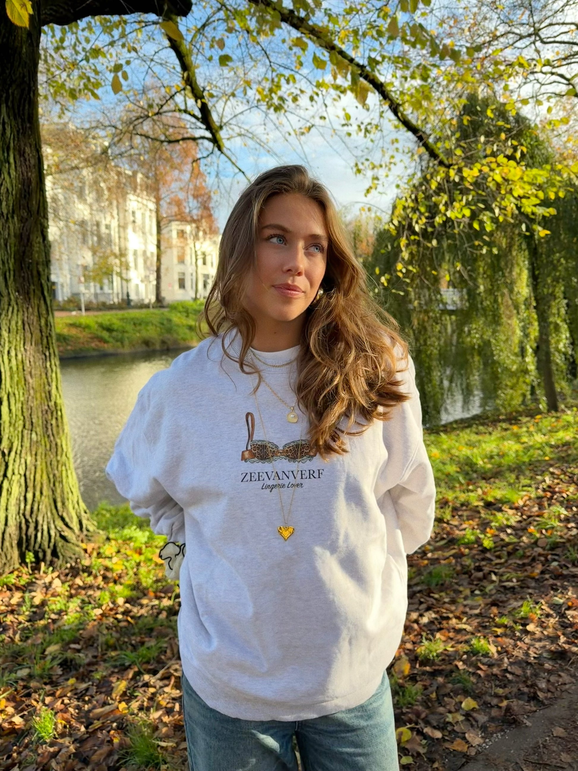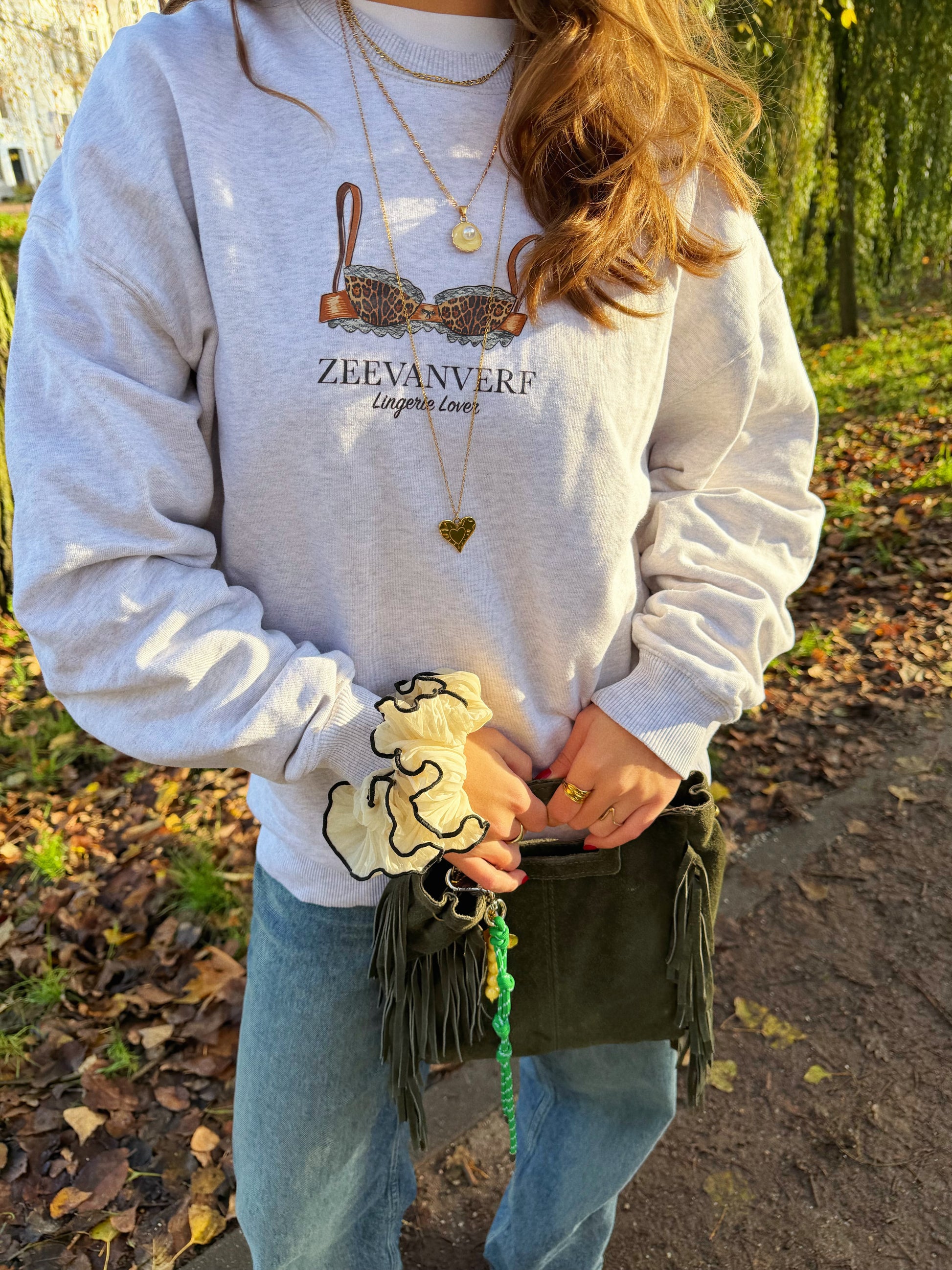 Leuke oversized sweater met op de borst de Lingerie lover tekening.
