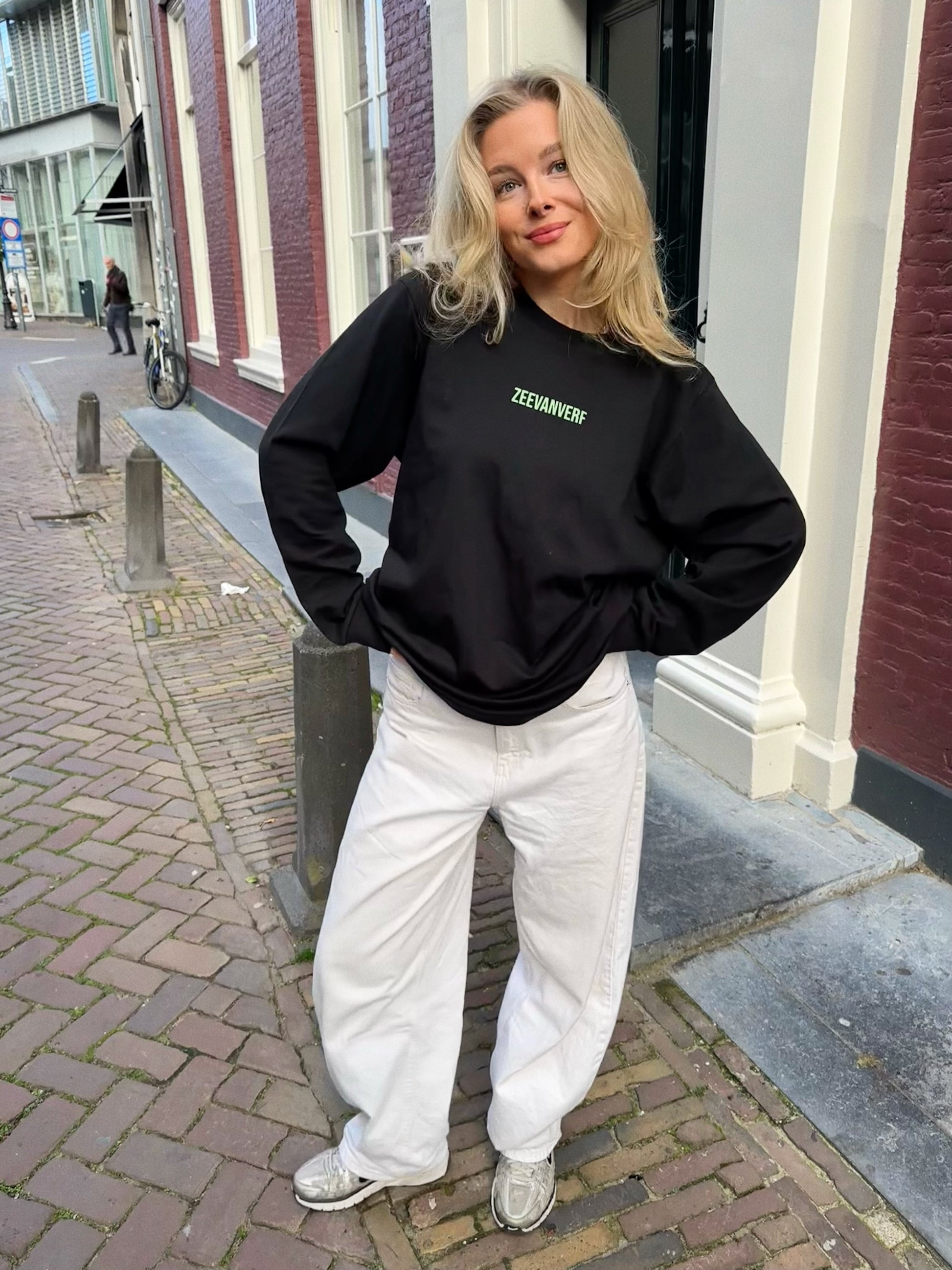 Leuke oversized longsleeve met op de rug de Skate Gans tekening.